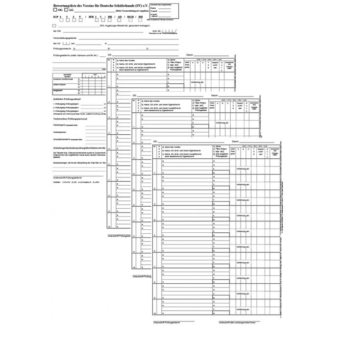 Dieser Satz besteht aus einer „Bewertungsliste Deckblatt“ und drei „Bewertungsliste Zusatzblatt“.