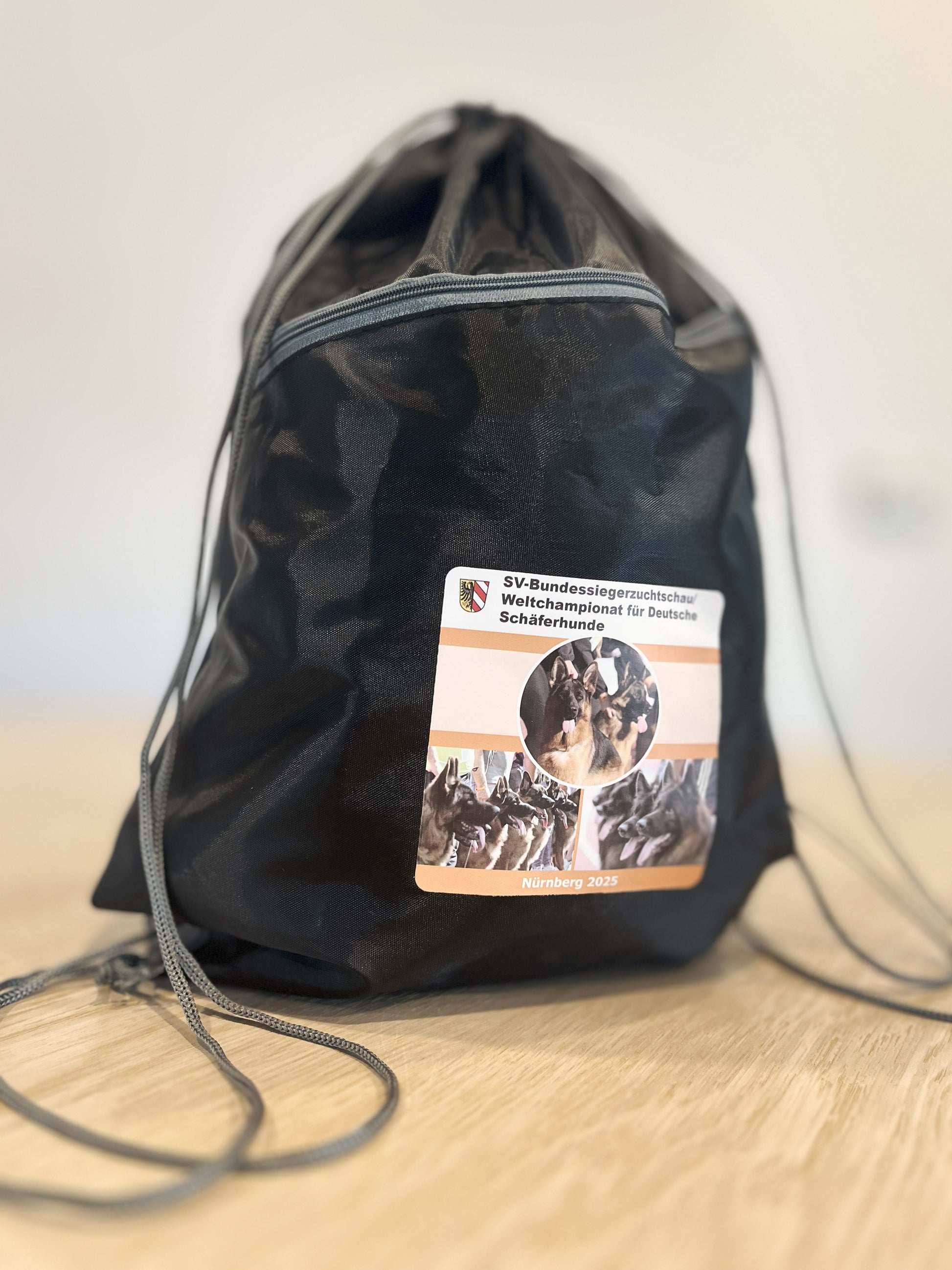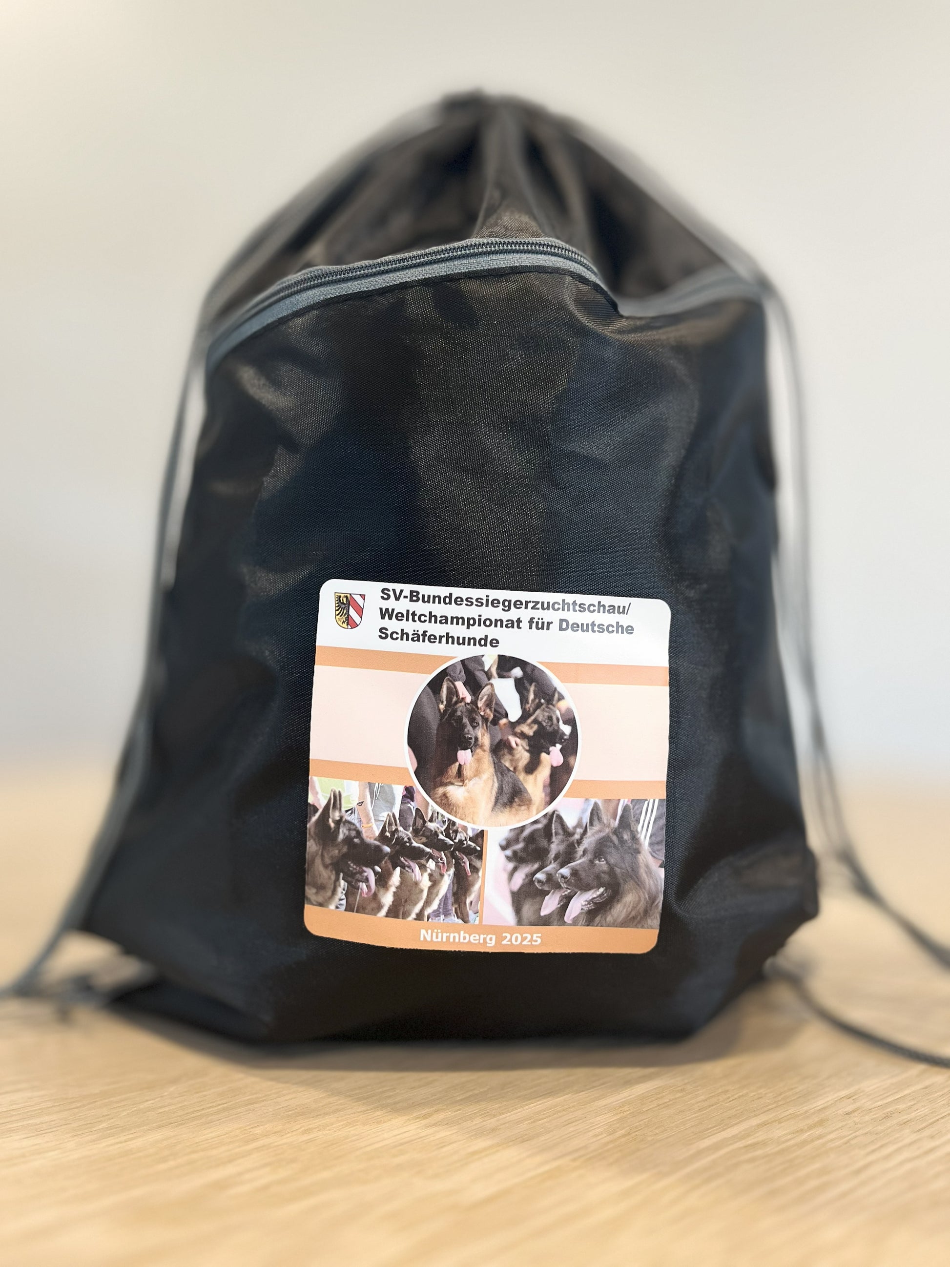 Praktischer Turnbeutel zur Bundessiegerzuchtschau 2025 in Nürnberg mit offiziellem Logo. Leicht, robust und ideal für Training, Freizeit oder als Erinnerung an das Event.