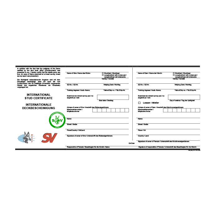 Die Original-Deckbescheinigung muss mit den Wurfunterlagen eingereicht werden, der Durchschlag bleibt im Besitz des Rüdeneigentümers.