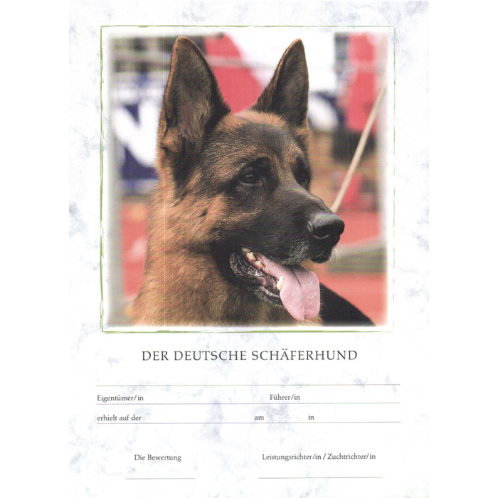 Urkunde zur Bestätigung der Teilnahme an einer Prüfungsveranstaltung oder Schau mit Eintragung der Bewertung.