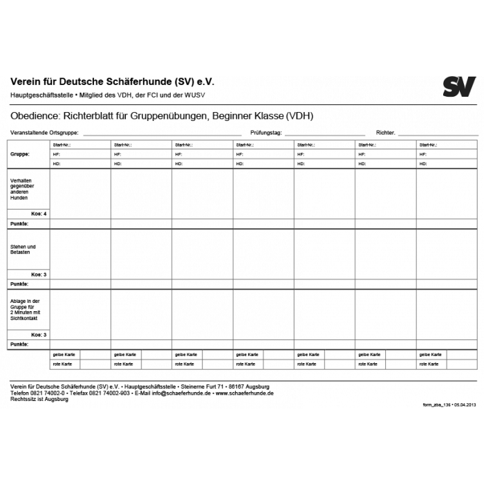Obedience "Richterblatt für Gruppenübungen Beginner Klasse"