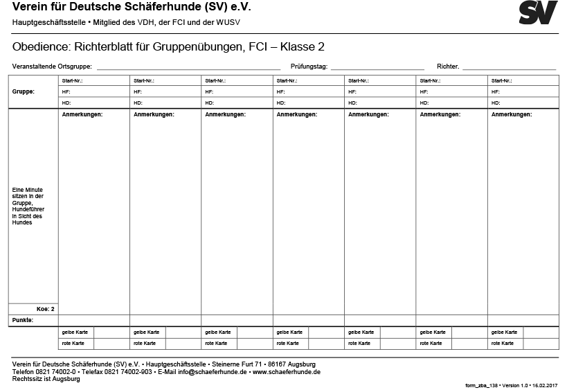 Obedience "Richterblatt für Gruppenübungen Klasse 2"