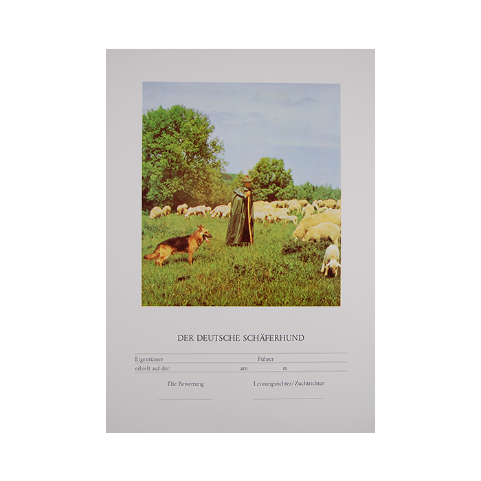 Urkunde zur Bestätigung der Teilnahme an einer Prüfungsveranstaltung oder Schau mit Eintragung der Bewertung.
