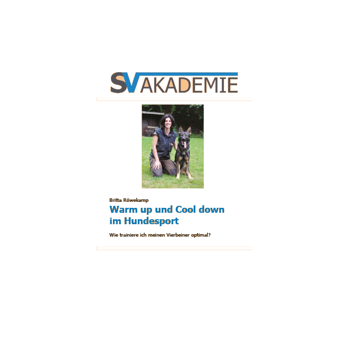 Die SV-Akademie bringt mit der vorliegenden Broschüre eine weitere Ausgabe in der sehr erfolgreichen Serie kleiner und kompakter Infohefte für alle Hundefreunde heraus. Von unserem eigenen Hobby- oder Leistungssport wissen wir, wie wichtig das richtige Aufwärmen, Stretchen oder Auslaufen ist. Auch im Pferdesport sind Abreitplätze obligatorisch. Aber im Hundesport? Die Autorin und aktive Hundesportlerin, Britta Röwekamp, nimmt uns mit in das „Warum und weshalb“ der Tierphysiotherapie und gibt Impulse für unser Training, egal in welcher Disziplin, für den Hausgebrauch und den Familienhund. Eine wichtige Information, um Verletzungen vorzubeugen und eine Gesundheits-prophylaxe insgesamt für unsere Hunde zu betreiben. Eines ist ganz sicher: Unsere Hunde werden uns ein gezieltes „Warm up and Cool down“ danken und Bewegungsspaß macht es ihnen zudem.
